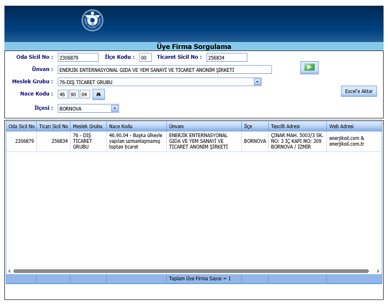 ENERJIK INTERNATIONAL INC. Izmir Chamber of Commerce Member Data (IzTO Member Data)